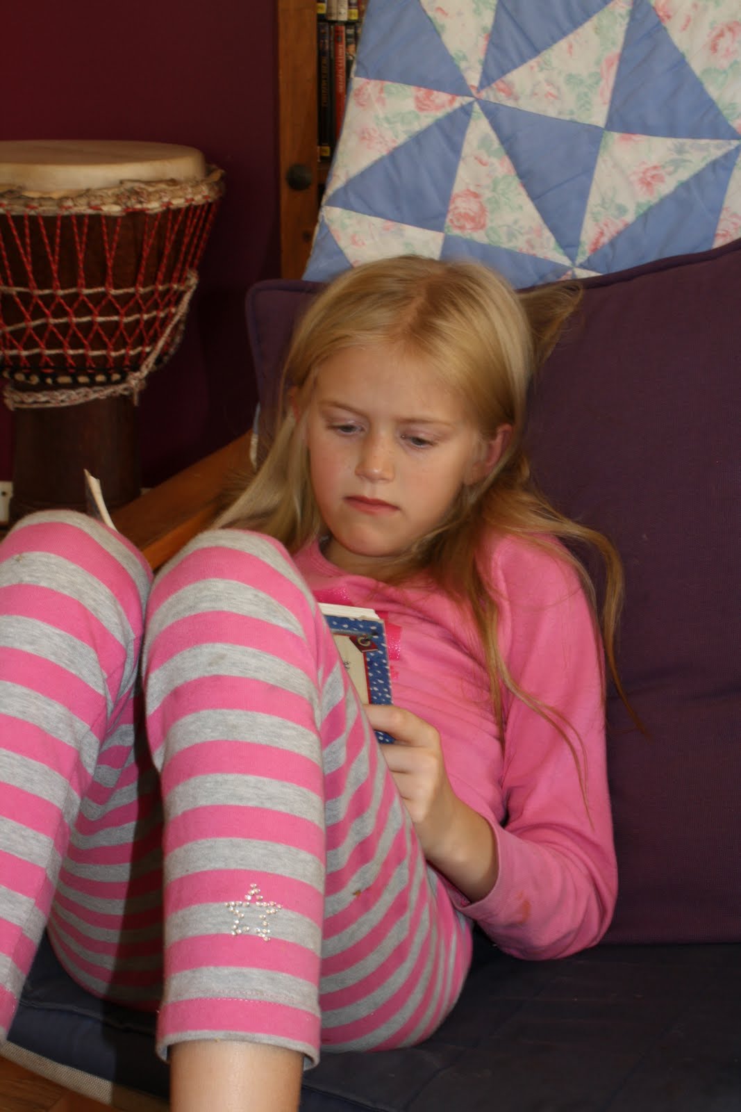 Summer was sick again this weekend, bad cough has returned. Poor Kid, she suffers well though & curled herself up & read a new book. I think that's the best thing you can do when you're sick..........Che' had a lot of homework to do........and I managed to get them to allow me to take some photos